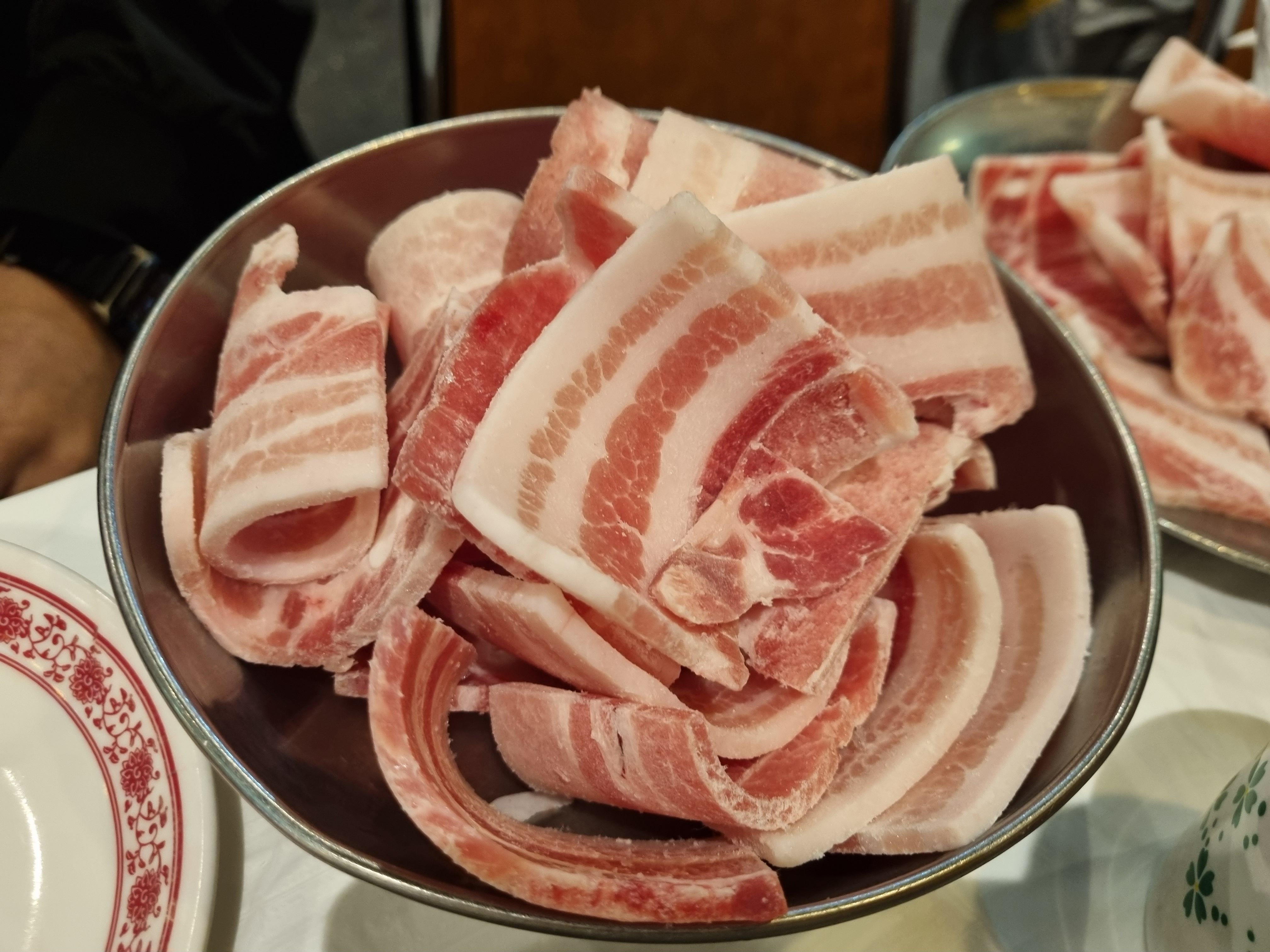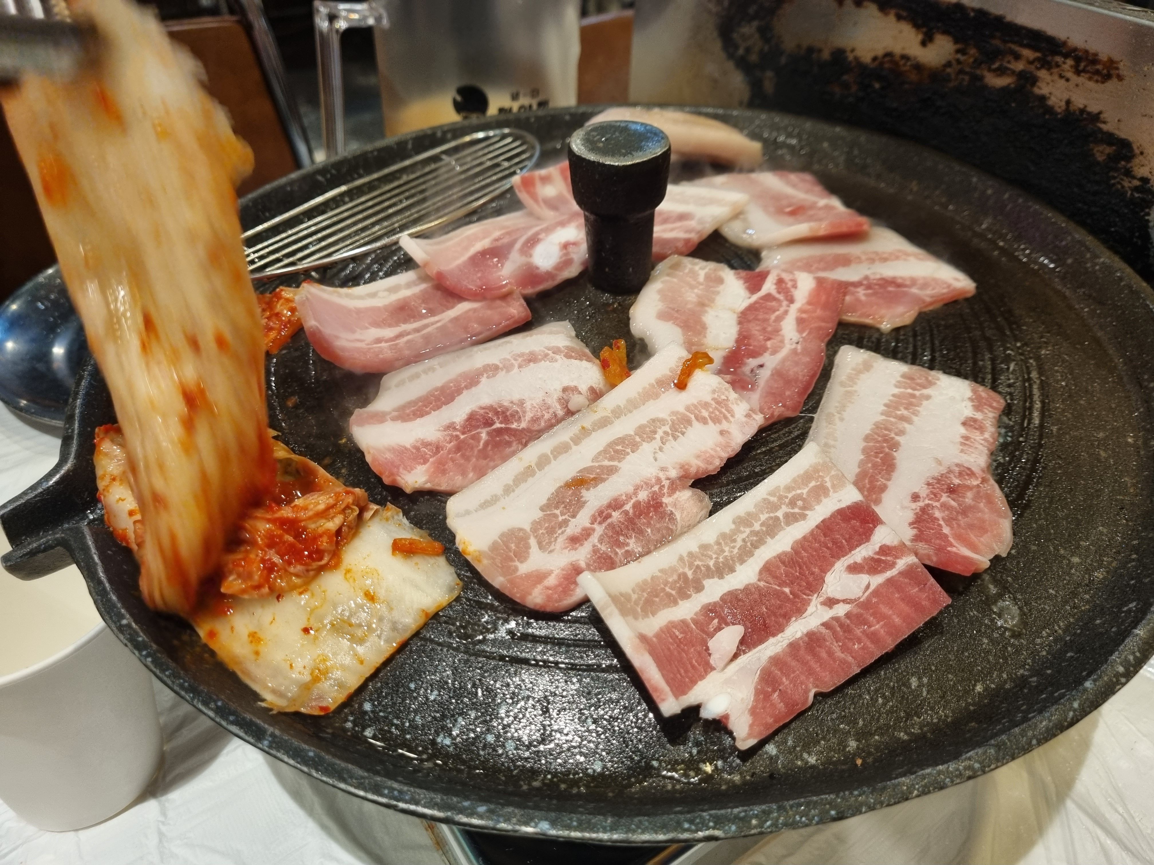 살찐 삼겹살을 먹는 게 더 좋아 보였다.