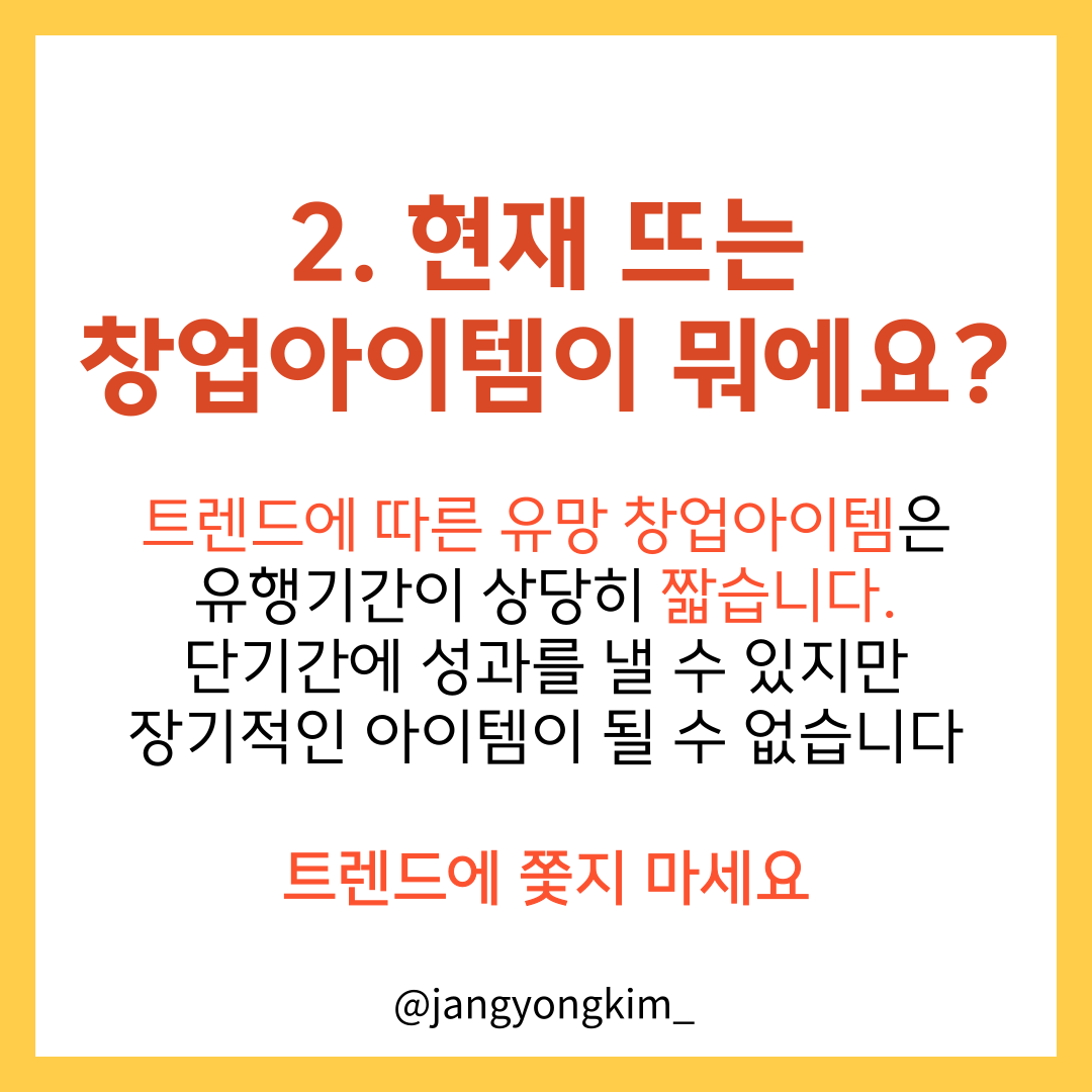 우리 삶에 가장 큰 영향을 미치는 요소 중 하나는 트렌드의 패션입니다. 창업을 할 때도 유행의 영향이 크다. 유행하는 아이템으로 사업을 시작하면 단기간에 성과를 낼 수 있지만 장기적인 성과를 원한다면 그런 생각은 버려야 한다. 트렌드에 따른 창업 유망 아이템은 대세기에는 상당히 짧기 때문에 단기간에 언제 치고 떨어질지 모른다면 창업을 하지 않는 것이 좋습니다.