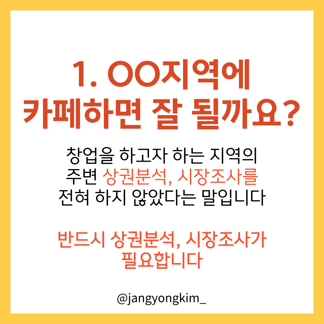 내가 카페를 차리려면 내가 좋아하고 SNS에서 가장 핫한 카페나 술이 맛있는 카페에 가서 먼저 분석을 해야 한다. 또한 창업하고 싶은 매장과 가까운 곳에서 운영하고 있고 라이벌이 될 수 있는 유사 카페를 방문하는 것이 가장 중요하다.