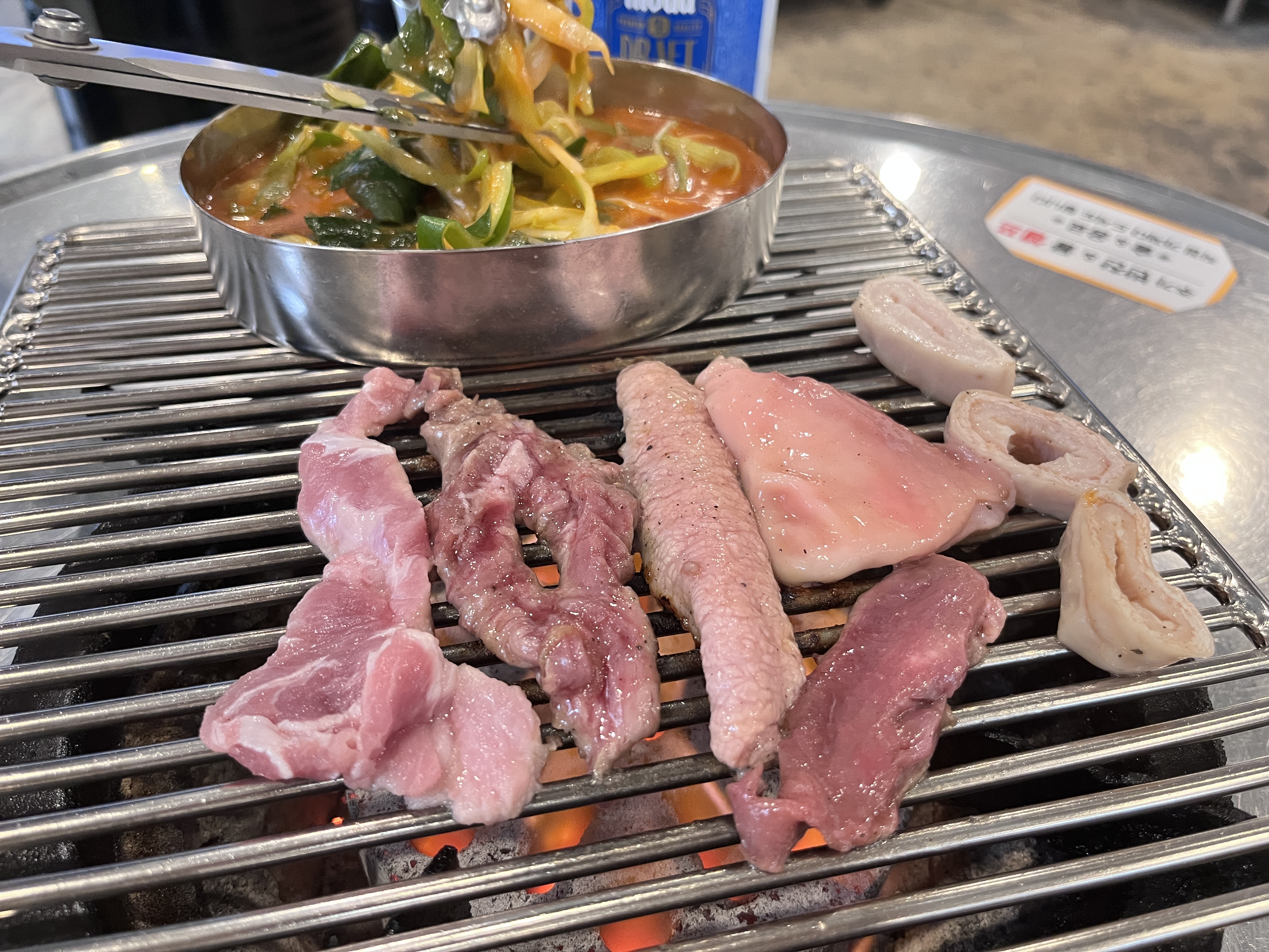 사장님께서 무원장군님 댁에 처음 방문이냐고 물어보시더니 고기를 하나하나 깔아주시고 간단하게 설명해주시고 고기 굽는법을 보여주십니다^^