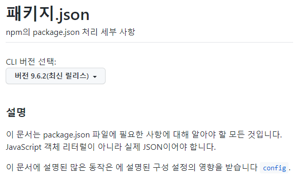 package.json을 찾기 위해 npm 문서로 이동하면 다음 화면이 표시됩니다.